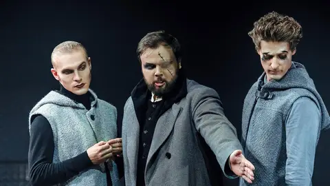 Купить официальные билеты на спектакль Ричард III в Московский театр имени Вахтангова. Заказ билетов по телефону (Москва): +7(495)-147-75-16 «Ричард III» – спектакль в театре имени Вахтангова в постановке режиссера Автандила Варсимашвили по пьесе Уильяма Шекспира. Ричард в борьбе за власть презрел понятие морали, совести, сострадания. Его агрессия сметает все человеческое на своем пути. Он хитер, изворотлив, безжалостен. Уничтожая всех возможных соперников, не останавливается ни перед чем, чтобы добиться цели. Угрызения совести неведомы ему. Достигнув высшей власти, Ричард подружился с одиночеством. Его ненавидят все – и лорды, и народ. Первые поднимают восстание. Ричард в панике, его терзают кошмары.. Он не может найти союзника. Постулат: «Кулак нам – совесть, и закон нам – меч», – не действует. Он ранен, одинок, беспомощен, но готов к бою. «Коня, коня! Корону за коня отдам!»… Автандил Варсимашвили, режиссёр: Пьеса «Ричард III» гениальна. Это энциклопедия власти, учебник державной силы, пособие по захвату трона. Шекспир безошибочно показал характер диктаторов всех времен и народов. За несколько веков до Наполеона, Сталина, Гитлера и других узурпаторов власти, он словно бы предсказал нам их появление и в то же время фантастически точно описал психологический процесс разложения личности диктатора, когда тот уже по горло в крови, и в его жизни больше нет главной цели. Поэтому все шаги Ричарда до завоевания им трона – уникальны, беспримерны, а после захвата власти все его ходы – банальны и предсказуемы. Меня волнует именно эта тема: как живется человеку, когда в его жизни нет настоящей цели? Шекспира ставят очень часто, но очень редко его ставят хорошо. Не все могут понять и воплотить его стиль, потому что Шекспиру требуются особенные актеры. Необходимо уметь молниеносно менять не только темп, но, порой, и образ, ведь театр Шекспира – это театр лицедеев, способных мгновенно сбрасывать с лица одну маску и тут же надевать другую. Ему, в отличие от других авторов, не нужна обычная психологическая правда – ему нужна только театральная правда. Стиль игры Шекспира – именно театральность, в истинном смысле этого термина. Поэтому я благодарен моему старшему другу, выдающемуся режиссеру Римасу Туминасу, за то, что ставлю Шекспира в Вахтанговском театре, – где, как не здесь, знают цену подлинной театральности!